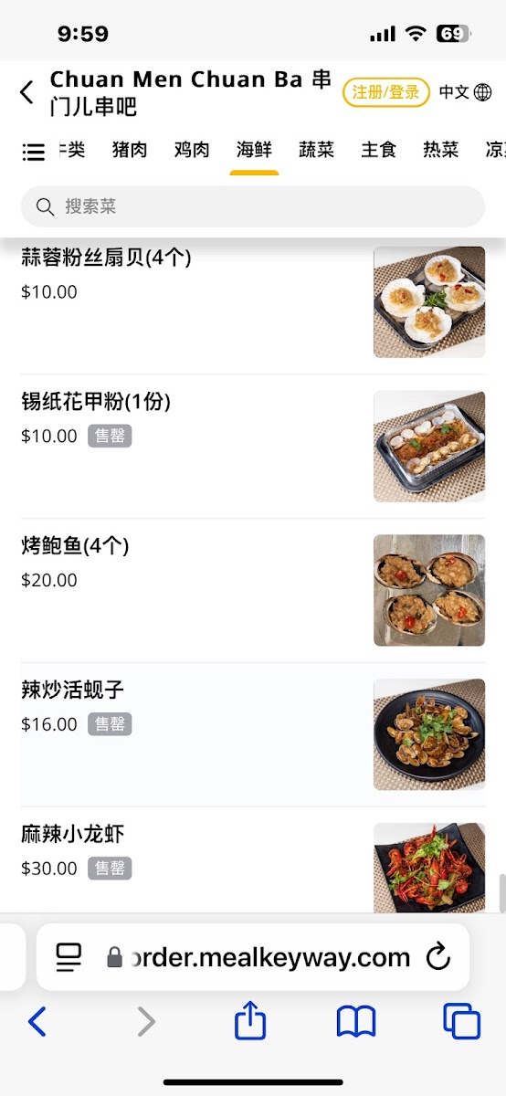 Tender scallops topped with minced garlic, vermicelli noodles, and a hint of chili, served in four portions.The skewer has no stick 烤串没有签子